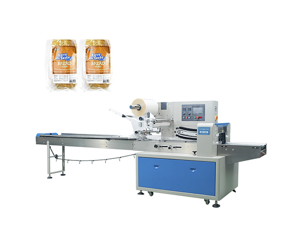 Машина упаковывает в трехшовные пакеты флоупак (пакет подушка):