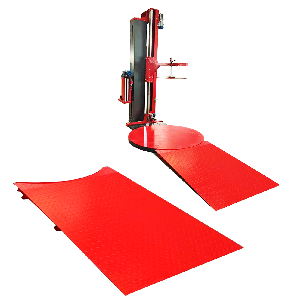 Процесс работы паллетоупаковщика прост: на платформу ставится нагруженный поддон (для упрощения завоза паллеты на платформу существует дополнительная опция в виде подъездной рампы, в начальную комплектацию не входит), оператор закрепляет стрейч-пленку на паллете и включает вращение платформы, начиная обмотку. При установке паллеты с грузом минимального веса, во избежании раскидывания, применяется прижимное устройство (дополнительная опция, не входит в начальную комплектацию). Предварительное растяжение пленки (престрейч) происходит в автоматическом режиме в соответствии с установленными настройками на панели управления.