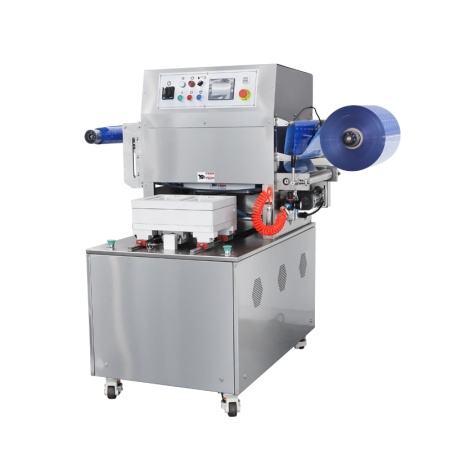 Управление запайщиком осуществляется с помощью интуитивно понятной электронной системы с простым интерфейсом. В комплекте к устройству поставляются несколько дополнительных матриц под различные типоразмеры лотков, что увеличивает гибкость и универсальность данного оборудования.